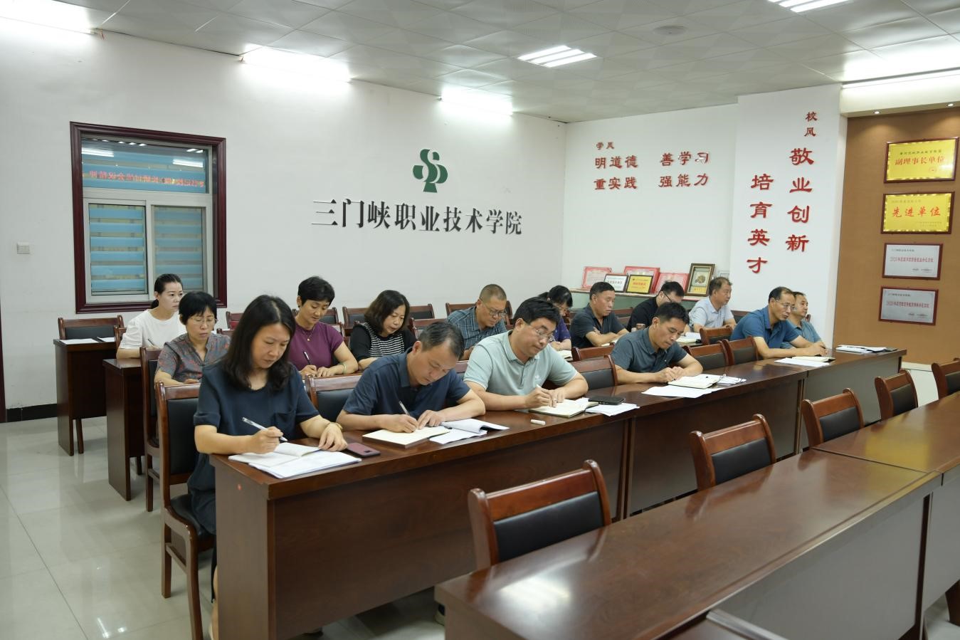 8月21日下午15:30在6号楼荣誉室,公司召开“落实全省高职院公司党委书记校(院)长研讨班会议精神 加快推进公司现代职业教育体系建设”工作部署会,党委副书记、经理颉潭成、副经理万平、各院部经理、教务处、发展规划处、现代教育技术中心负责人参加会议。会议由副经理万平主持。